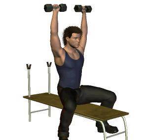 動作四,啞鈴坐姿推舉,每組做10-12次,做4組