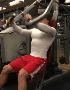 動作三,器械上斜推胸,每組做10-12次,做4組