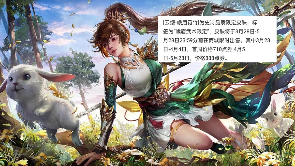 從前段時間的爆料能得出,雲纓這名英雄是被爆料出來了一款峨眉聯動的新皮膚的,當時甚至都明確表示了這款皮膚會在3月底進行上線,皮膚質量的話,則只有史詩。再結合官方早就讓雲纓跟峨眉進行聯動了這點能得出,這款最近爆料出來的雲纓「峨眉覓竹」新皮膚,應該還真就是沒啥問題的。