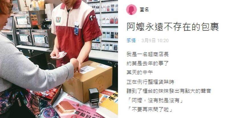 某超商店長分享了一則催淚感人的故事,大約兩個月來,一位阿嬤天天造訪店裡,想要取貨,但店員都確認過了,確實沒有她的包裹。終于有一天,她的家人尾隨著她來到店裡,向店員解釋了事情的完整情況。原來幾個月前,阿嬤的孫女寄了一個包裹給她,但不巧的是,孫女在不久後發生了意外身亡。